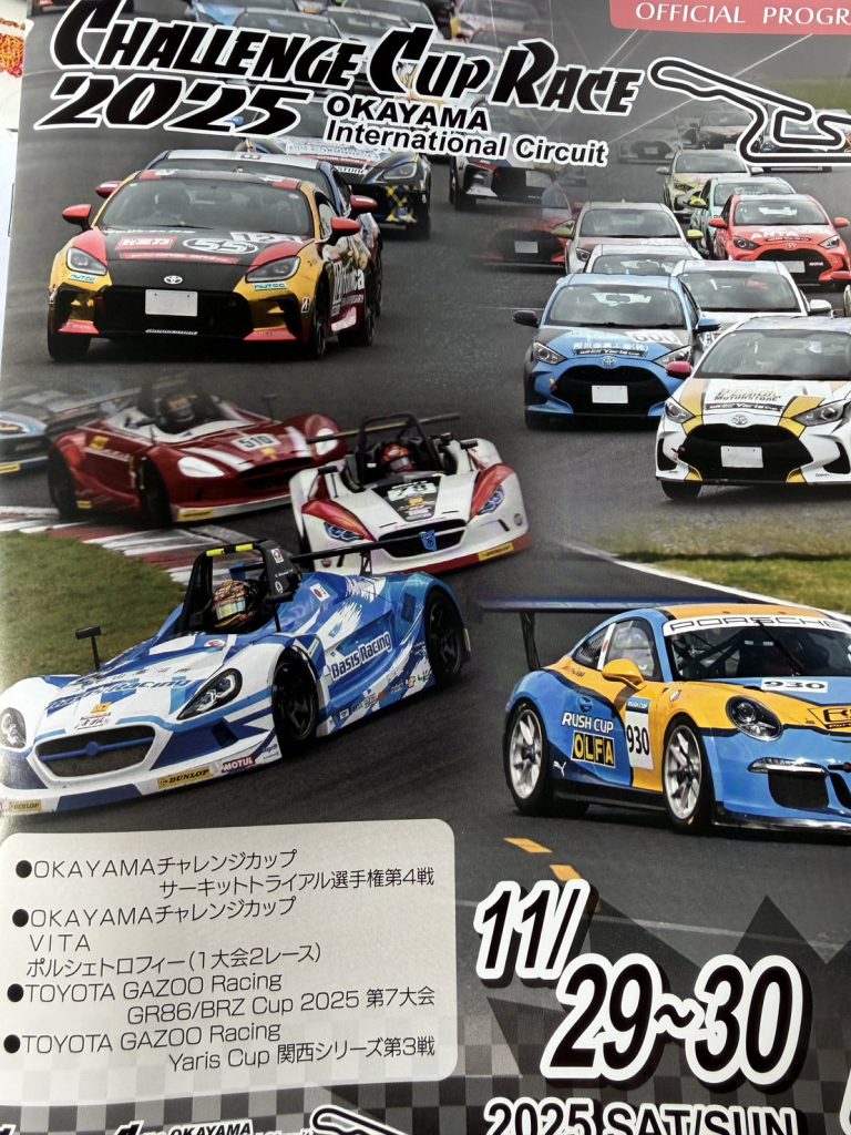 11月29日・30日は岡山チャレンジカップレース最終戦に参戦させて頂くため