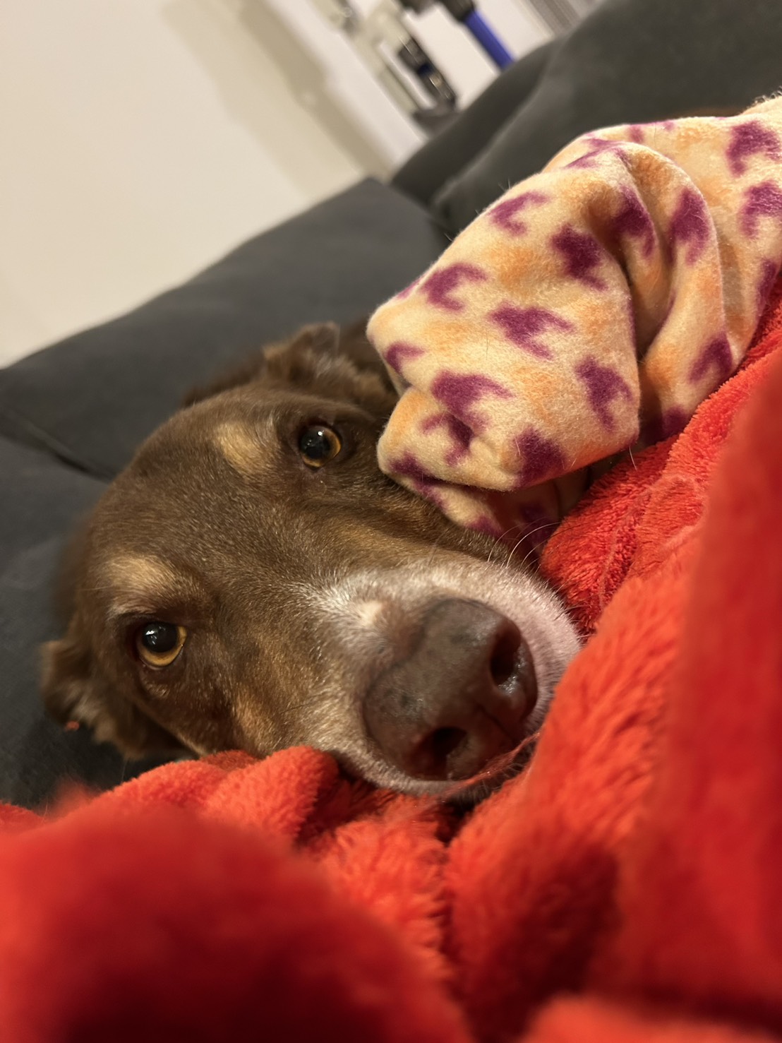 2025年12月9日 昨日は こんばんわ!中西です 昨日の休みはカンタが最近怪我であまり運動できていないので 軽めの運動で河川敷と散歩へ 指の怪我が治るまで当面ハードな運動は禁止してますが なんせ動きたくて仕方ない病なので制御が大変 帰宅したら自分だけ特別感がありご満悦の表情♪ 留守番させられていた2頭はふて寝(笑) 昨日はよく歩いて今朝は筋肉痛です♪ 一日休んでリフレッシュ出来ましたので 今週も頑張って参りましょー!