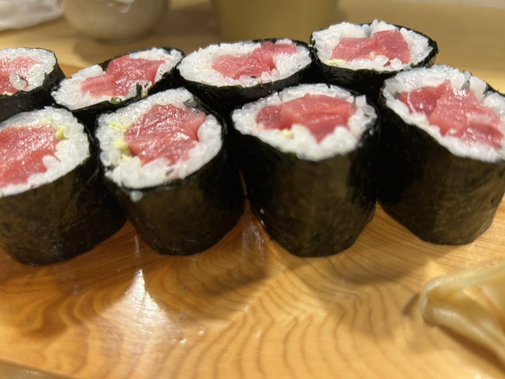 宝塚駅前の「味鶴寿司さん」で熱燗と鉄火巻き(笑)