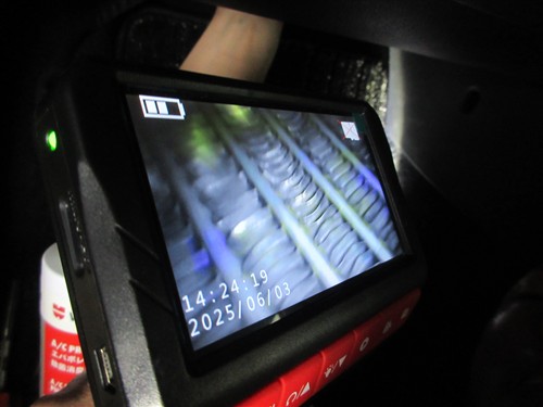 モニターでエバポレーター本体を見ながら洗浄と除菌を行います