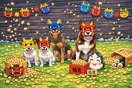 チャットGPTに我が家の犬の写真を節分バージョンにしてもらいました