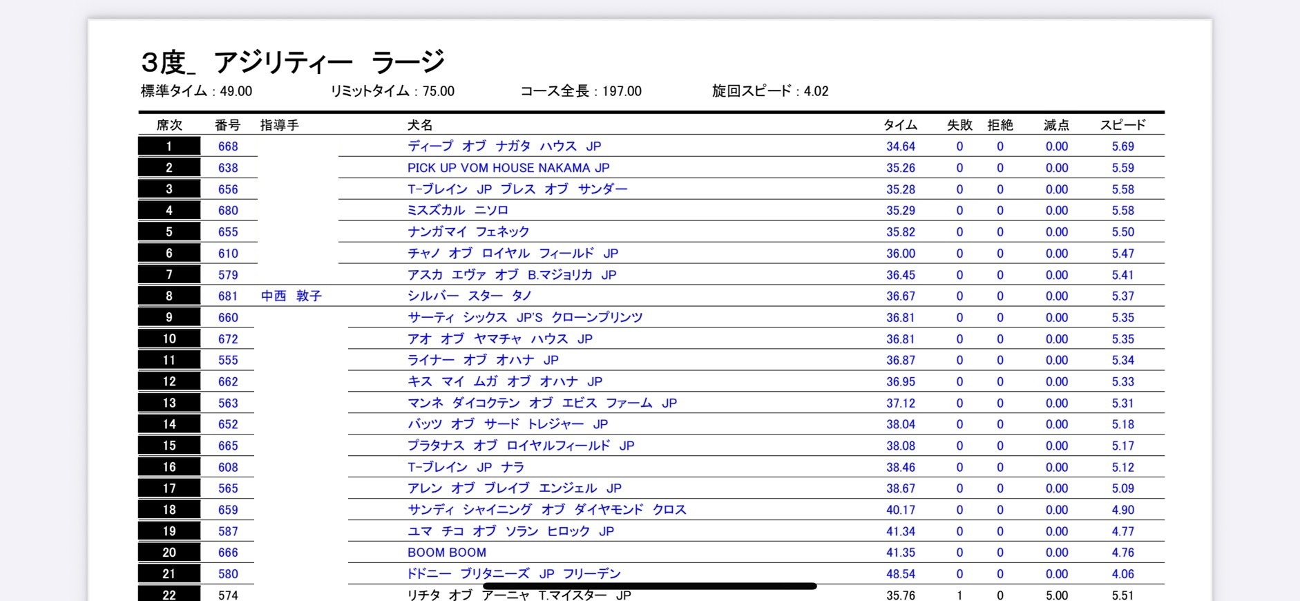 1席のハンドラーさんは日本のトップハンドラー(プロ)さんで