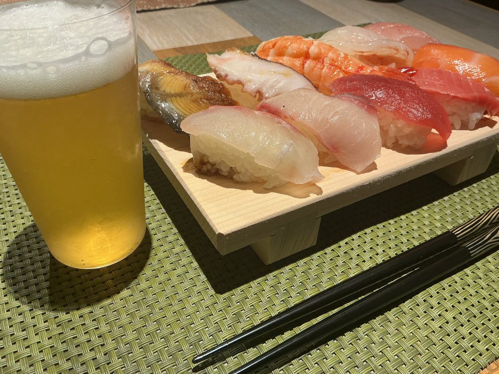 早速スシローでテイクアウトして下駄の上に並べてみました!