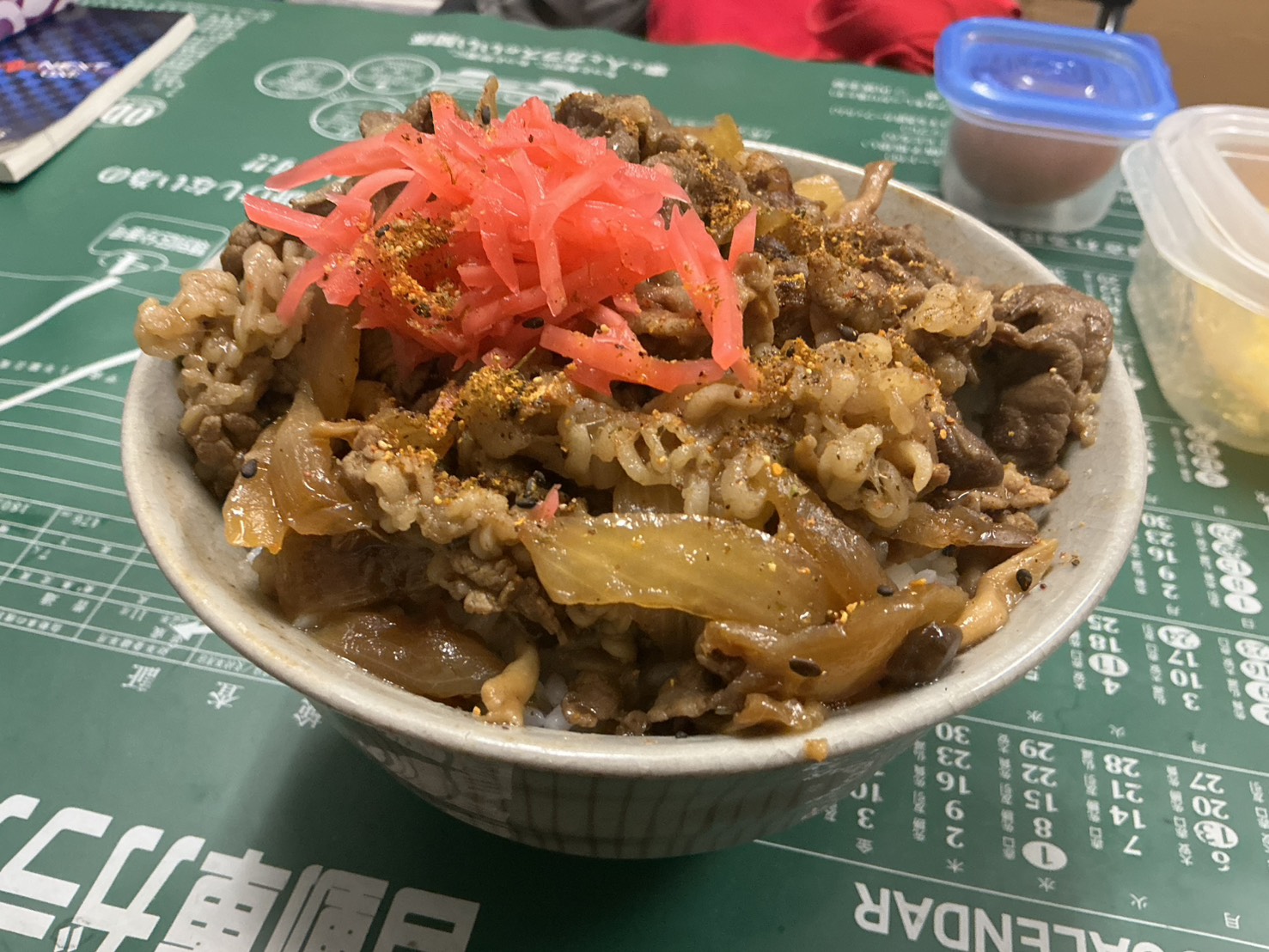煮るのは面倒くさかったので新玉ねぎと牛スライスを甘辛く炒めて