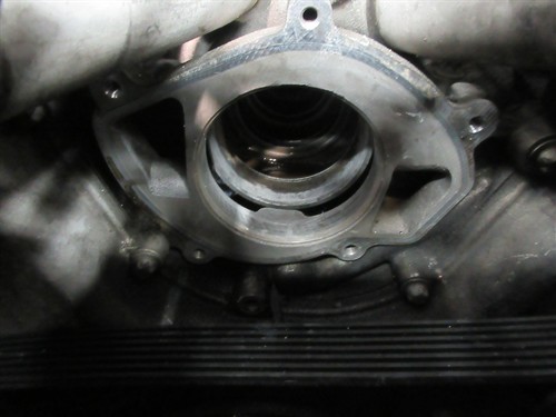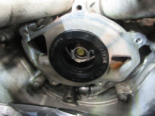 ウォーターポンプも外してようやくサーモハウジングが見えてきます