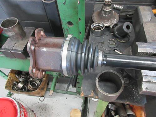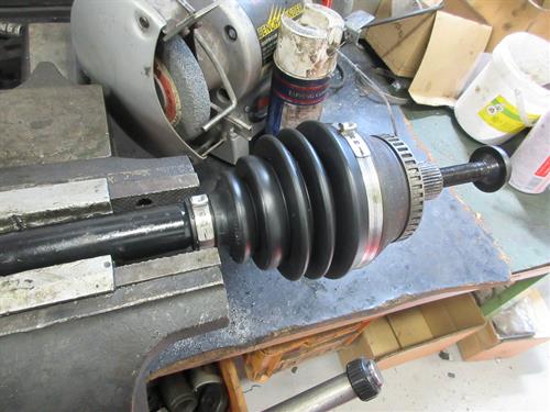ドライブシャフトをバイスで固定して交換ます