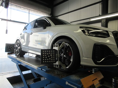 取付後に車高を微調整してからアライメント調整も行います