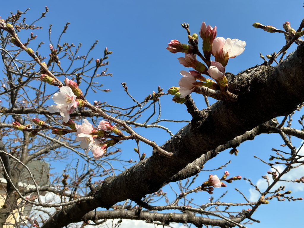 我が家の庭の桜が開花いたしました♪